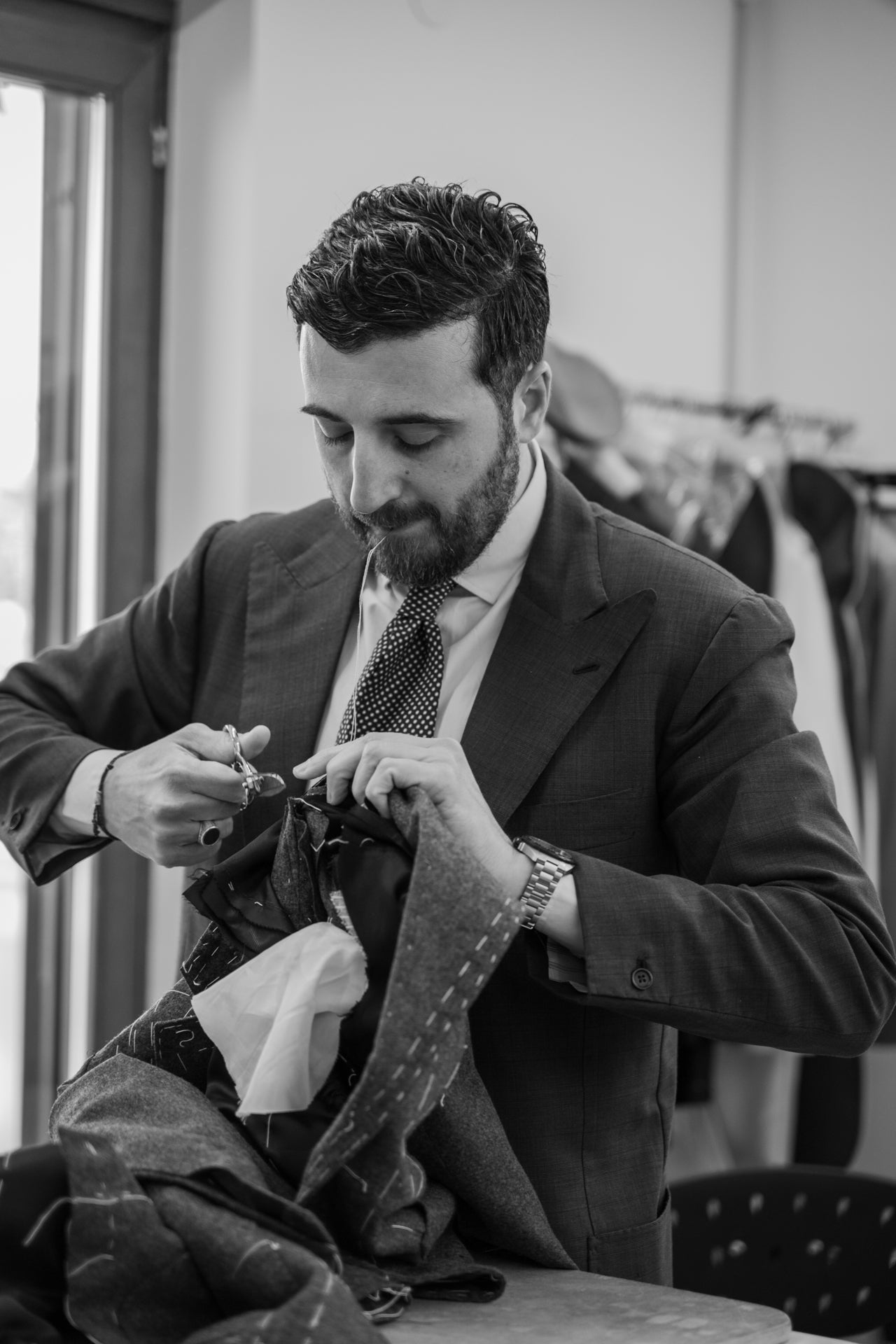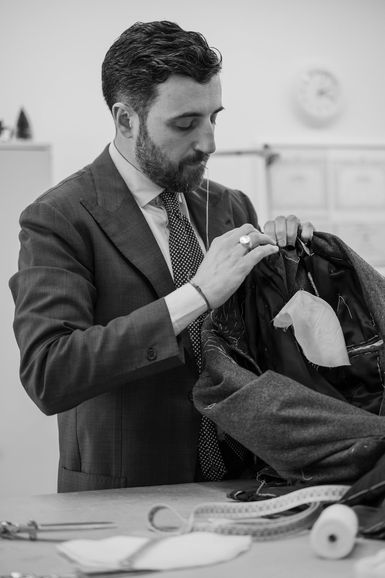 In our ateliers or during Trunk Shows organized in various Italian and international cities, you can embark on a tailor-made journey that combines artisanal tradition and stylistic research.